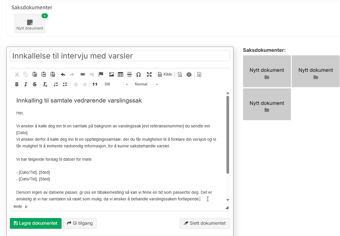 - Registrere nye saker på vegne av varsler