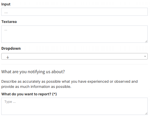 When someone submits a report about questionable conditions in the whistleblowing portal, you can edit the text displayed in the field where the reporter selects the direct recipient.