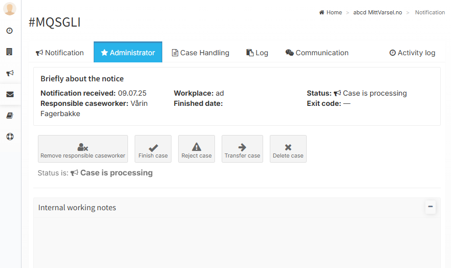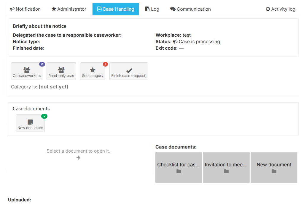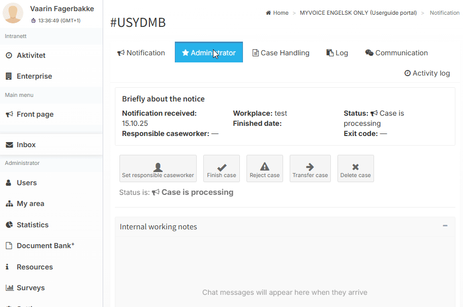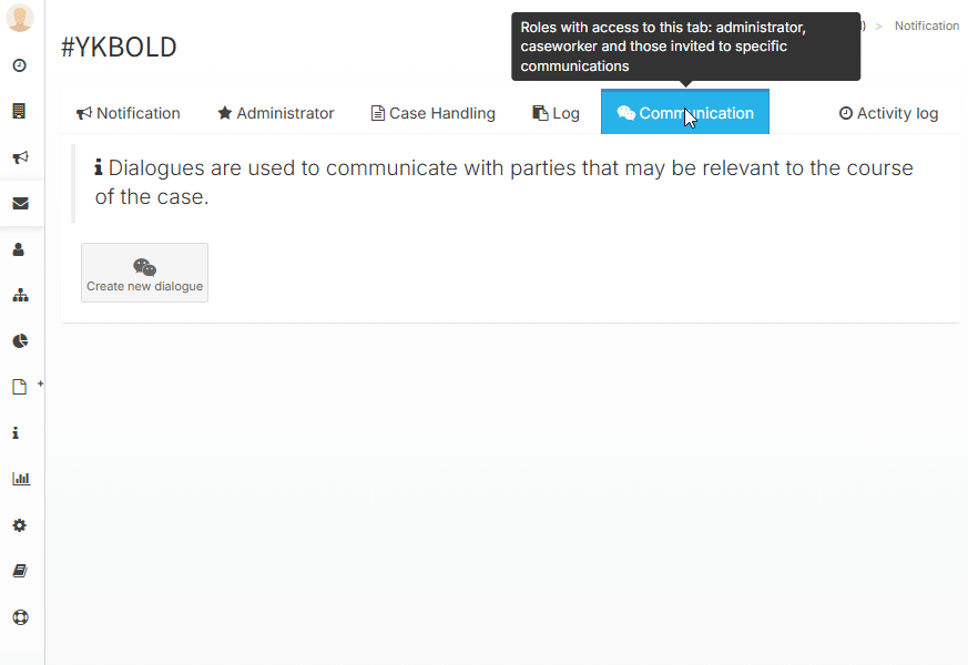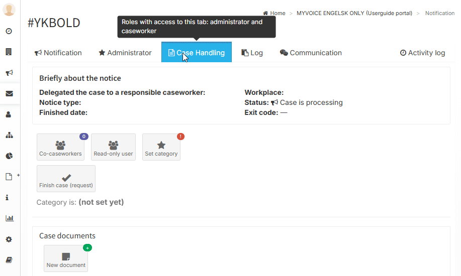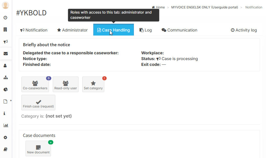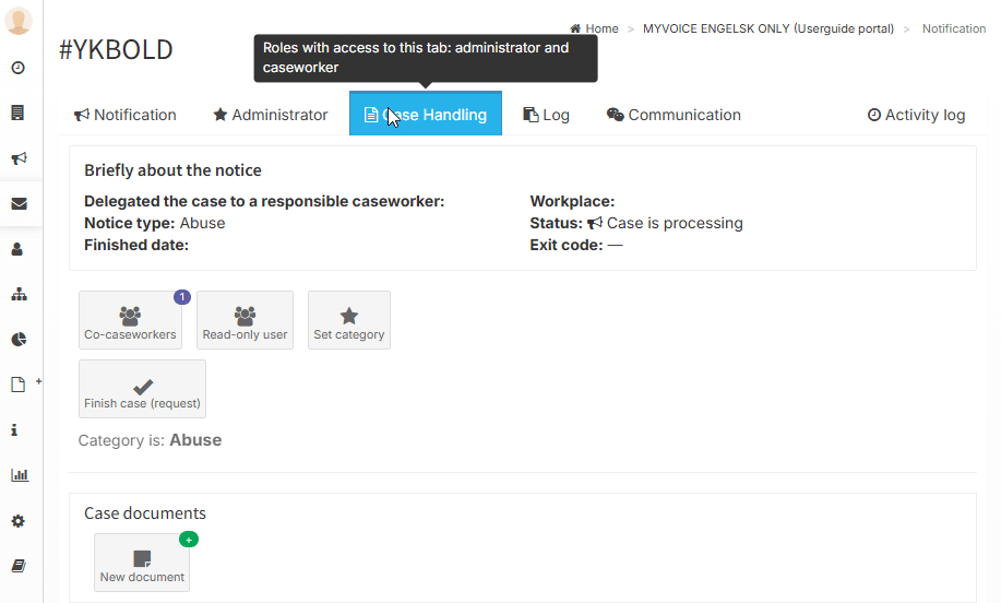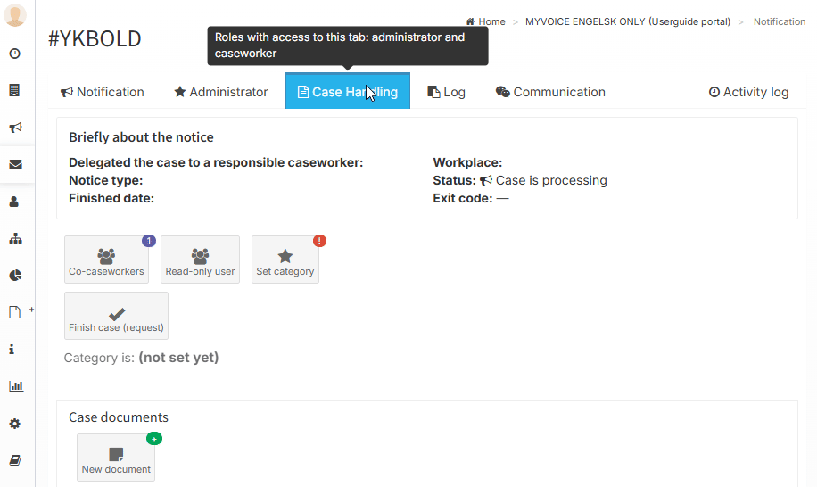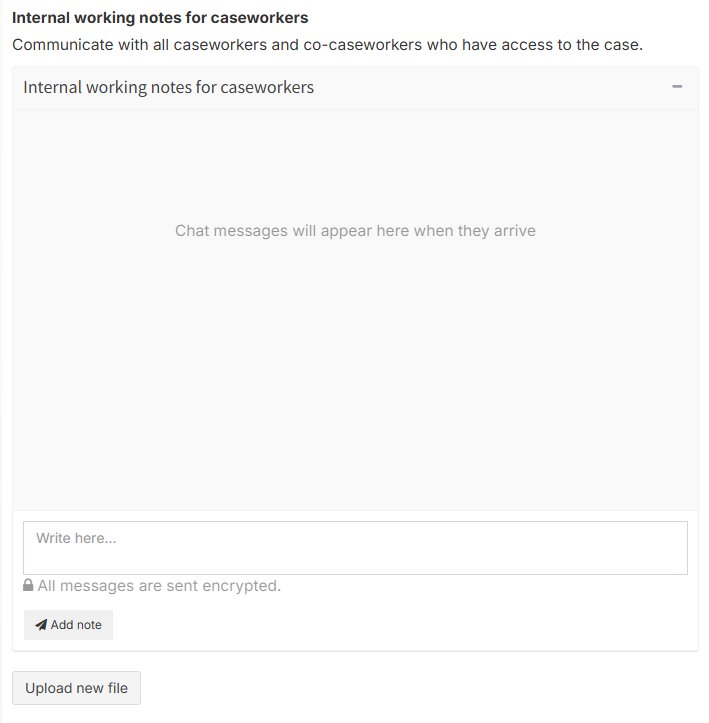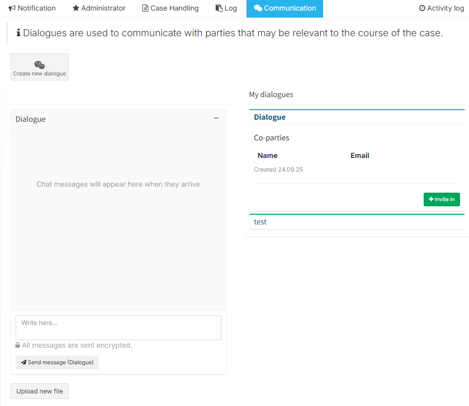 In the case handling tab, you can communicate with co-caseworkers and administrators.