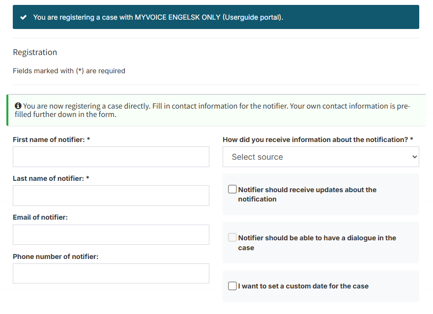 When a new report is submitted in the portal, you as the case handler will automatically receive an email notifying you that a new case has been registered.