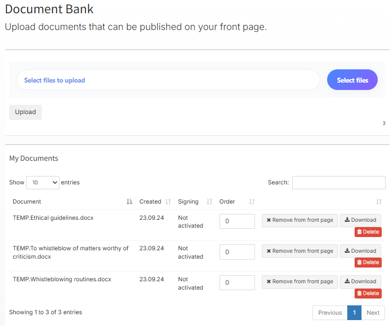 • Manage the document bank